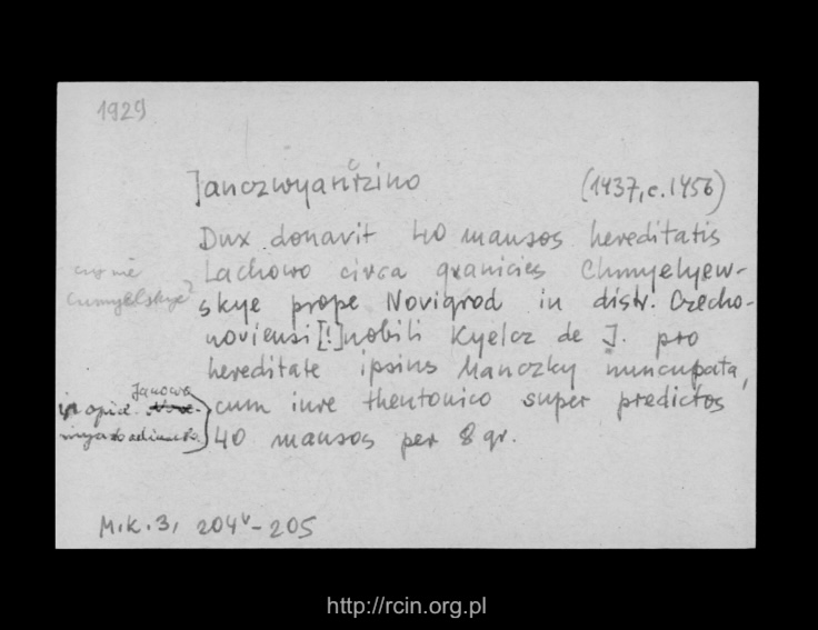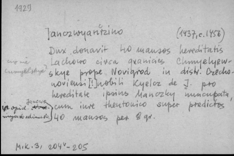 Książę Janusz I daje Kiełczowi z Jaćwiężyna (Kołaki-Jaćwiężyno, przasn.) i jego dzieciom dziesięć włók chełmińskich nad rzeką Wissą z wyjątkiem barci, z obowiązkiem służby.