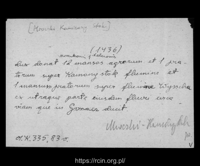 W 1436 roku książę mazowiecki Władysław I nadał Mroczkowi, synowi Kiełcza z Jaćwiężyna, dwanaście włók roli i jedną włókę łąki nad Wissą, przy drodze do Goniądza. Osada ta, pierwotnie zwana Kamionstokiem, przyjęła później nazwę Mroczki-Kamiennystok, od której jej dziedzice – potomkowie Mroczka herbu Kościesza – przyjęli nazwisko Mroczkowski.